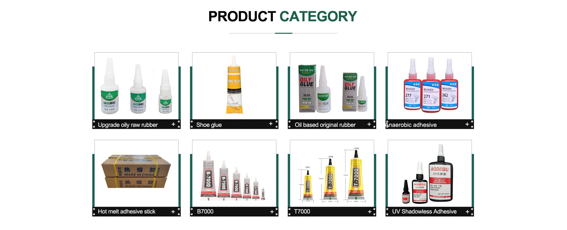 Main categories: 502 Glue, Instant Adhesive, Shoe Repair Glue, UV Glue, Anaerobic Adhesive